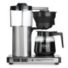 The Technivorm Moccamaster CD Grand Coffee Maker offers a simple to operate brewing experience that can produce a full 60 oz. carafe in 6 minutes, ideal for entertaining guests at home. Water is heated quickly by the unique copper boiling element, maintaining temperatures between 196 and 205 degrees Fahrenheit for an ideal extraction. The cone shaped brew-basket design makes for a 6-minute steep to perfectly saturate the grounds and extract the full complexity, flavor, and aroma from your coffee. While brewing, an ultra-precise pulse action pre-immersion drip-style system allows for the perfect coffee bloom.
